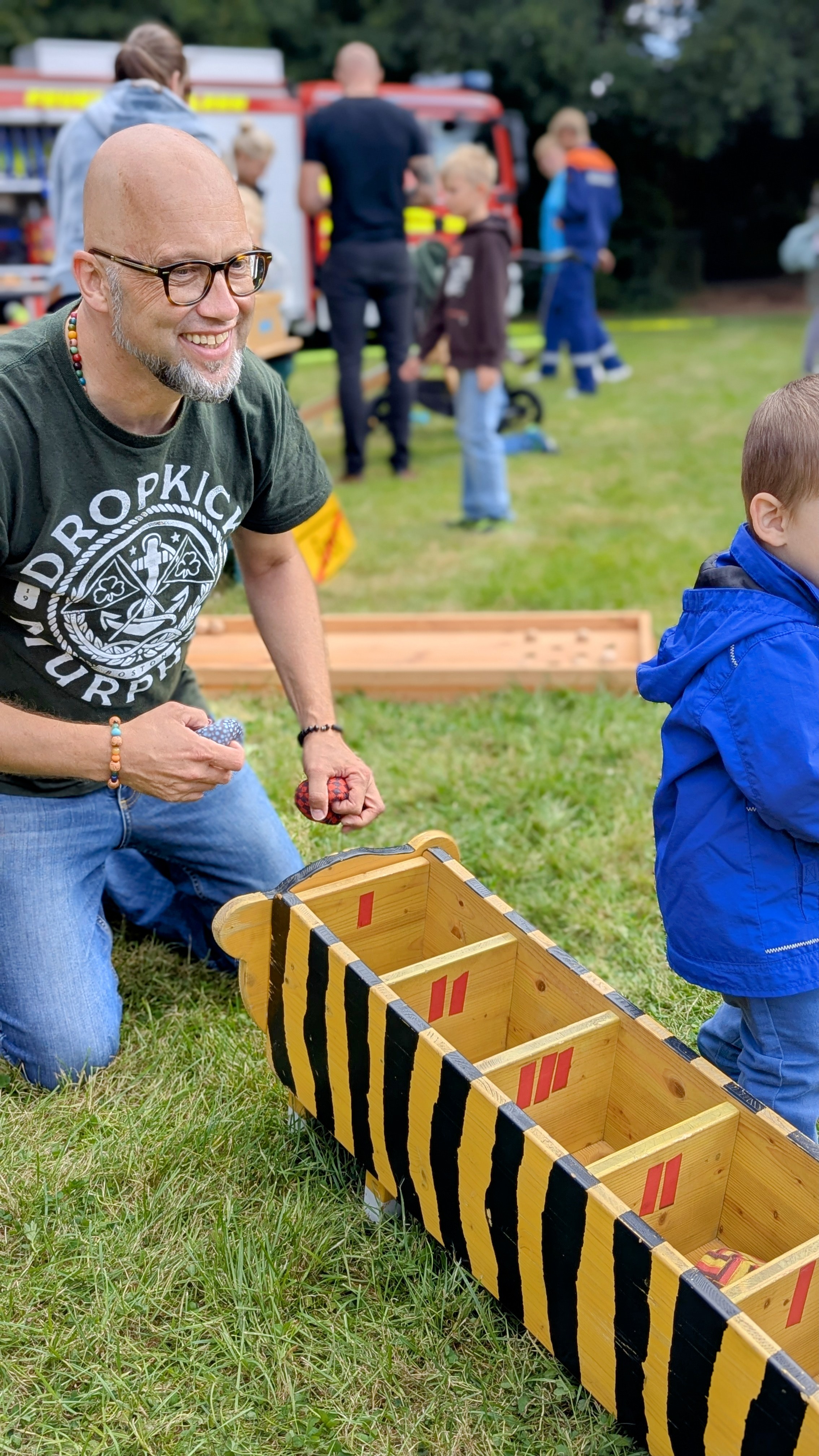 Seit Mitte Juni 2025 bin ich dafür unterwegs und packe meine tollen Holzspiele, lustigen Teamspiele und natürlich mein Seifenblasenbesteck in mein kleines blaues Auto.